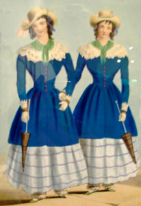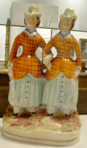 The Alphington Ponies The first day of the summer vacation usually finds me wandering the city at a much slower pace than normal, mainly because I’m not aiming to get somewhere specific. This year I was fortunate to have company, and it was indeed Jessica who spotted the delight of the day in the Royal Albert Memorial Museum. There, tucked away in a corner of the otherwise fairly dull exhibition on portraiture, was a small painting of ‘The Alphington Ponies’. Now, the Alphington Ponies were not ponies at all, you understand, but rather two near identical ‘sisters’ (they were allegedly both daughters of Colonel Dunsford of Alphington, near Exeter) who caused something of a stir when they arrived atop their ponies in fashionable Torquay in the 1840s. Dressed in highly decorative outfits that daringly revealed their undergarments, the two women were sadly ostracised by the fashionable society of the time, and returned to Exeter later in life, to do what, one can only guess. I expect it involved staying cooped up in dark imposing old manor houses with occasional forays to town to buy expensive fabrics and ornaments, with these visits being no doubt accompanied by hushed whispers and pointing fingers. But what do I know? A little ceramic likeness of the duo made in Staffordshire around 1850 shows that the pair clearly captured the imaginations of the time though, and surely there is a fabulous tale lurking there for the telling… |