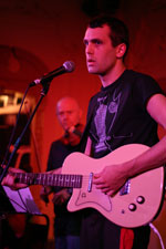 cast off the rusted cocoon and fly into tomorrow. Of course minor tremors of this kind happen all the time. They’re the ones that get you by day to day; are the ones tied up in single songs, the occasional fleetingly obsessive album and in great lines from bad songs you hear fragments of in city streets and motorway traffic jams. Then there are the great earth shifting Mt St Helens events that throw you off course, that cause you to drop everything, to throw up your arms in joyful surrender as words escape involuntarily from your lips, calling ‘Take me! Take me! Take me now!’ So it is with Hidden Cameras. There are so many things to love about Hidden Cameras. They implicitly understand all that is great about what I call the Pop experience, naturally grasp the elements required to create the package that allows that experience to transcend the world around us. Hidden Cameras essentially know the importance of myth building to Pop, understand the need for theatre and of course that the need for theatre does not mean an excuse for pretension and the preposterously pompous. Hidden Cameras are earthy and otherworldly in the same instant, and that’s a rare achievement and one that needs to be applauded. They make absurdist reference to fairy tale escapism whilst being graphically open about sex, both those concepts being key of course. Hidden Cameras take the elements of Pop and strip them back to the bones, disassemble and rebuild the constituent parts to create something oddly familiar yet peculiarly new. Hidden Cameras throw peculiar shapes and cast naturally strange shadows. Oh, and of course they have great songs. That goes without saying. I assumed you understood as much… From the outset the Hidden Cameras live performances have been key to their appeal, have been essential ingredients in the construction of the Hidden Cameras myth. With each event given an individual title (tonight’s is the Union Of Wine show) and with tales of porn theatre and church stages filled with up to thirty performers and stripping masked dancers it’s easy to see why people have been intrigued. Tonight’s show at the baroque Bush Hall is the first time I’ve managed to catch the band in the live context, and I’m excited by the prospect. This is unusual. I’m easily bored by bands when they play live. As a rule I much prefer the personal delight of songs creating moments in my memory through association, prefer taking things at my own pace, making my own time and space within songs. Maybe I just don’t like being guided… Or maybe too it’s just that so many bands are interminably dull. Certainly too many are content to play the detached cool card, or wallow in an imagined status created by a media so keen to bestow wardrobes full of emperors clothes. Not Hidden Cameras though. Hidden Cameras short-circuit all the traditional notions of indie cool and thus emerge as easily the coolest of all: Hidden Cameras draw the threads of Art and Pop together with an excitement and energy that puts all others on the shade. It’s wonderful is to see a band so obviously in thrall to the sound they are making, so immersed and united in the sheer joy of the creation of their gospel of PopArt Noise. Led by Joel Gibb, Hidden Camera’s recognised leader, the band of wild hearted troubadours carouse and caress Gibb’s songs with the passion and sensitivity you find only in the truest hearted lovers. They reach for the sky and fold fingers over stardust. They dive to the insides of undersea chasms and emerge with pearls and hidden treasure. And they dance. And we dance along. Of course the dancing is key too. I’ve said it before and I’ll say it again: Hidden Cameras are a great dance band. And when they floor the throttle and turn up the heat, you just can’t help yourself; your feet will shimmy and your hips will twirl. Just to prove the point, the bands’ own dancers themselves creep in during the third song, one in a wolf mask, the other with a paper plate face decorated with paper tassels and a Dali moustache. They carry small flasks of wine which they squirt into the open mouths of the audience, my year of abstinence broken in a startled second of abandon that I will treasure for a while to come, or at least until the weekend. They climb on the PA stands, gyrate with outstretched arms, cast off their attire to reveal crosses of masking tape and forests of hair. That it’s more Exploding Plastic Inevitable than Hawkwind goes without saying. There’s an energy at work with Hidden Cameras that explodes across the band / audience divide, forging connections that insist upon the strongest of emotional responses. Only the cynically jaded can feign indifference. The rest of us are carried away on waves of devotion, and when the band climax with an epic ‘Smells Like Happiness’ with everyone wearing red blindfolds I swear I can almost sense that euphoria in my nostrils. With a triumphant new album due courtesy of the fine people at Rough Trade in July, Hidden Cameras are poised to be the soundtrack for another summer of love and devotion. Make sure you tune in too. © 2004 Alistair Fitchett |