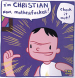 of urban Japanese life. Meanwhile over at Top Shelf there’s a new issue of James Kochalka’s ace Superf*ckers. If you took my previous advice and picked up the opening salvo then you’ll no doubt be delighted to hear that Issue 273 has more of the same, and then some. Searching for sandwiches in Dimension Zero! Radical Randy in a coma! Everyone Loves Grotus! Hot new costumes! Vomit Rainbow! Jack Kraak goes Christian! More excessive cursing and general hanging out not doing very much! I mean, seriously, what more could you possibly want from a comic?! And there’s more Kochalka in the second issue of the Conversations mini-comics, in which his American Elf takes on the great Jeffrey Brown of Be A Man, Clumsy etc in a frame by frame philosophical discourse on the whys and wherefores of drawing and publishing comics. It quickly degenerates into a slapstick conflict between Brown’s more analytical, self-reflective, rationalizing approach and Kochalka’s devil-may-care ‘just live life!’ abandon. Shit, vomit and mops are involved… |